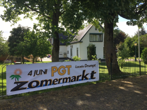 De jaarlijkse zomermarkt is op het grasveld bij de Drumptse kerk aan de burgemeester Meslaan.